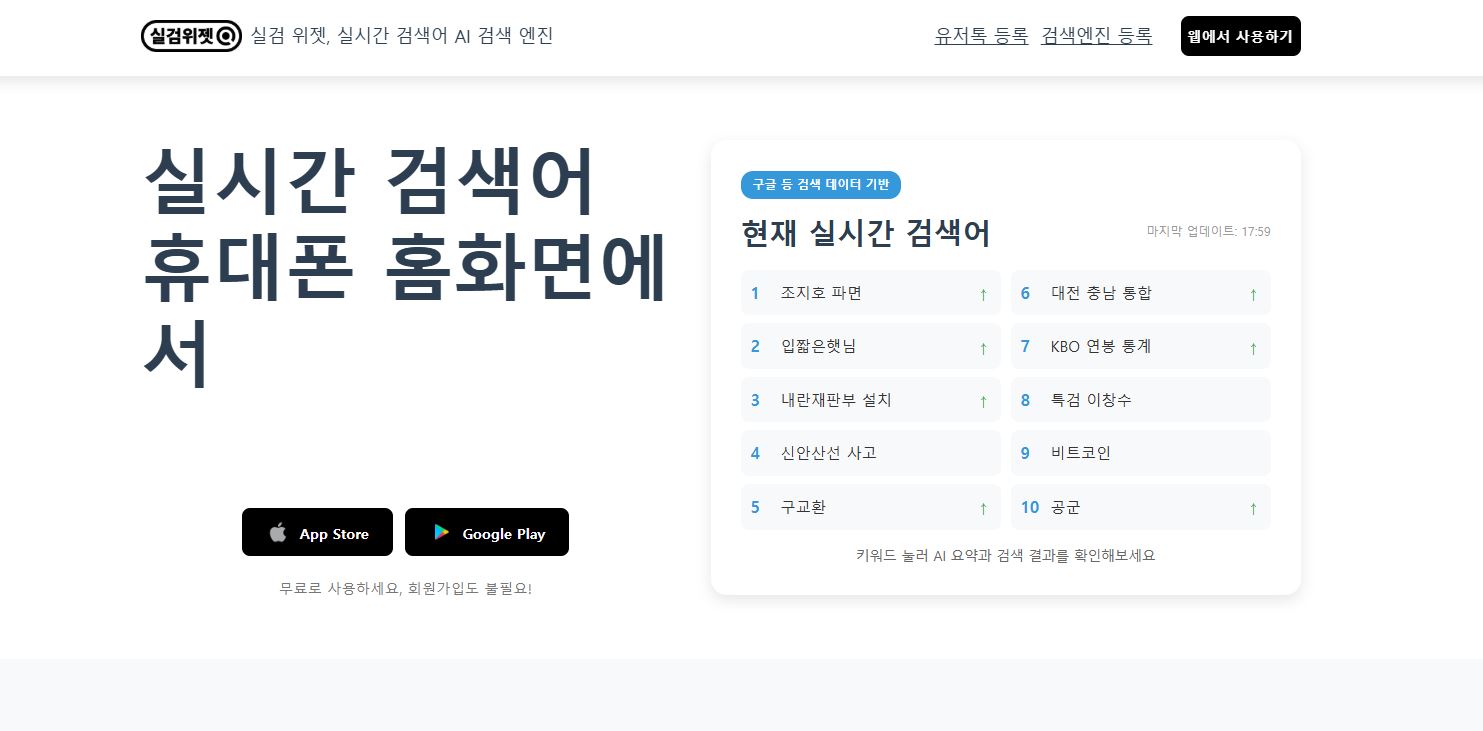 AI 검색엔진과 홈화면 실시간검색어(실검) 위젯을 결합한 서비스로,