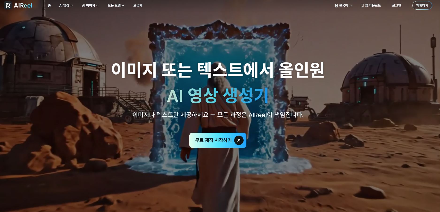 AIReel은 텍스트나 이미지를 입력하면 AI가 자동으로 영상을 생성해주는 생성형 AI 기반 영상 제작 서비스입니다.