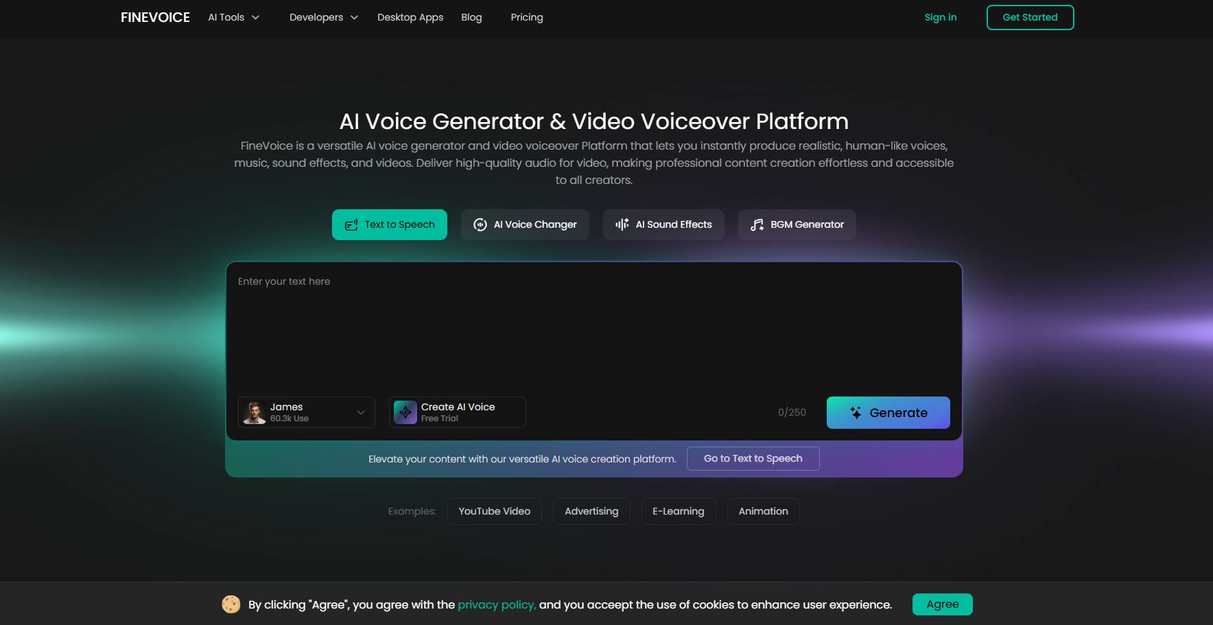 FineVoice는 텍스트 음성 변환부터 음성 복제 더빙 자막 생성 음질 향상까지 한 번에 처리할 수 있는 올인원 AI 오디오 제작 플랫폼이다.