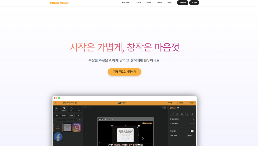 Videostew는 텍스트나 블로그 글을 기반으로 영상을 자동 생성해주는 AI 영상 제작 도구입니다.