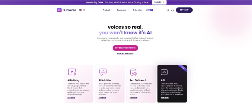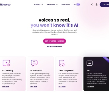 Dubverse는 영상을 업로드하면 AI가 자동으로 다른 언어로 더빙해주는 혁신적인 플랫폼입니다. 60개 이상의 언어를 지원하며, 500개 이상의 자연스러운 AI 음성을 제공합니다.